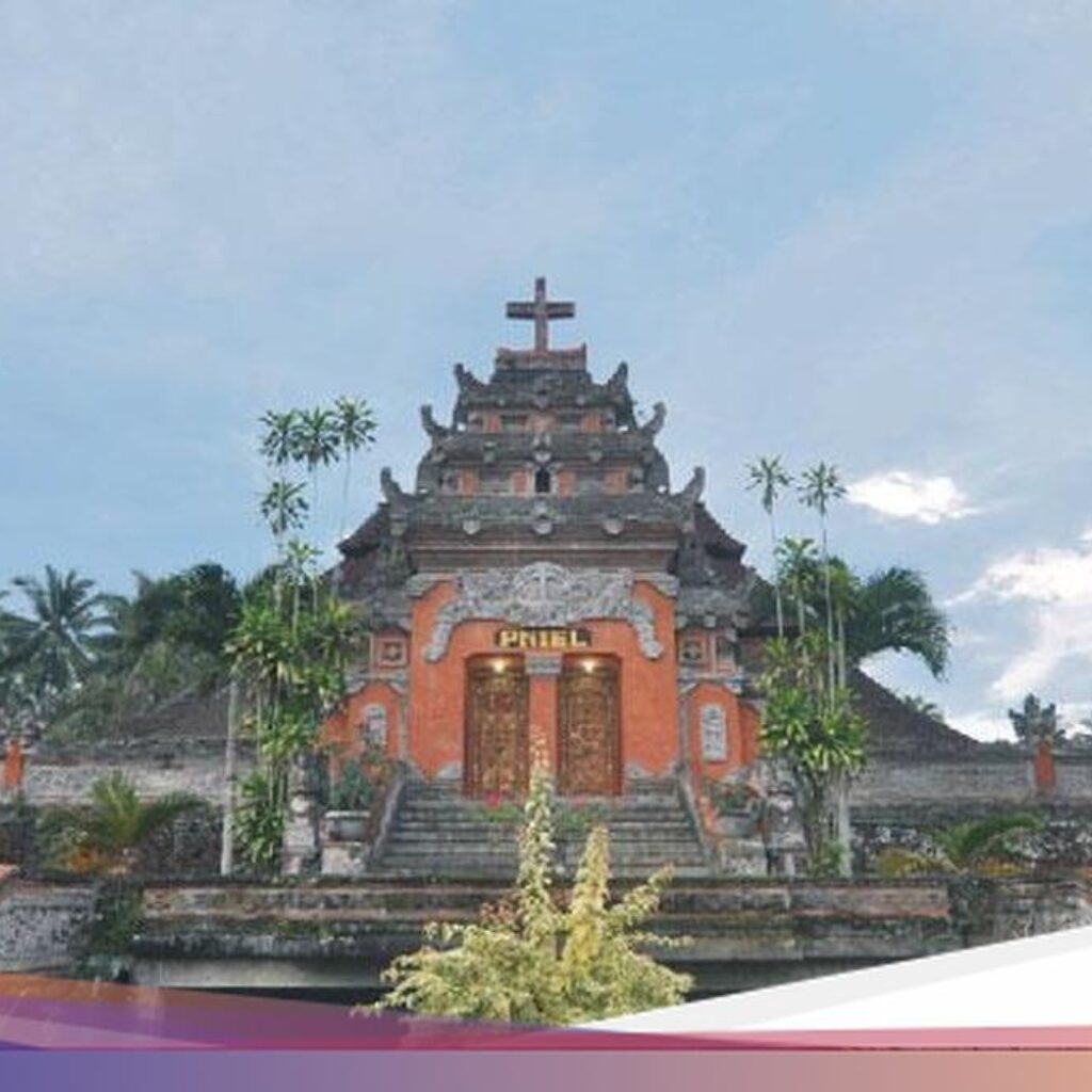 Nuansa Bali juga terlihat Bersama hiasan gereja Di Natal. Di Pada Didepan gereja terpasang penjor, serta hiasan gebogan yang dibuat Bersama janur.